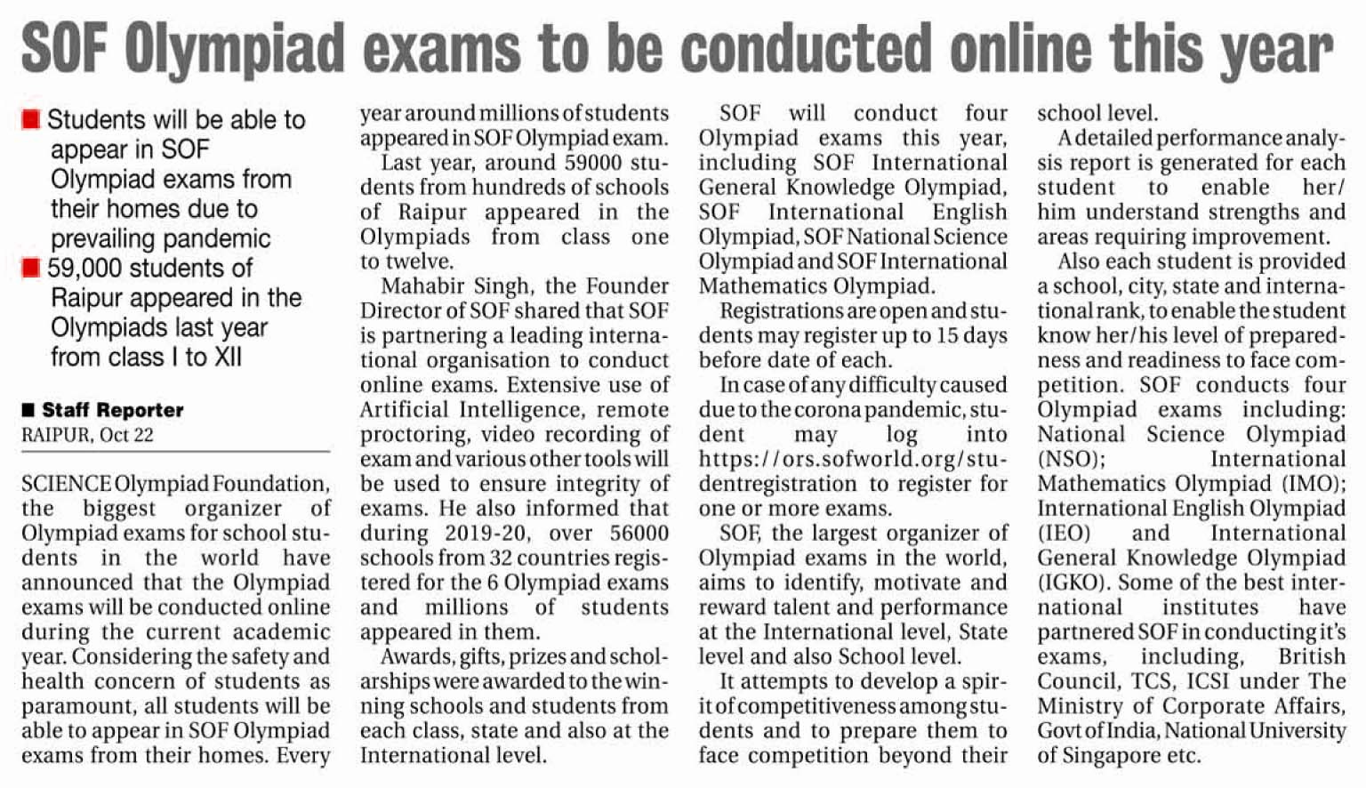 About Science Olympiad Foundation (SOF)