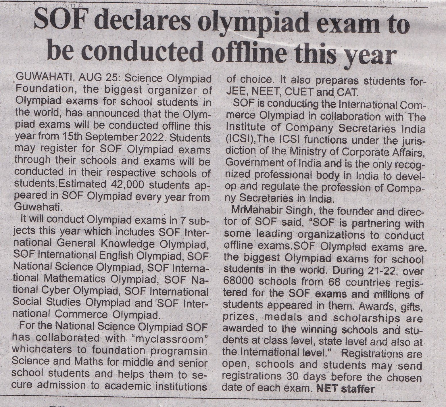 About Science Olympiad Foundation (SOF)